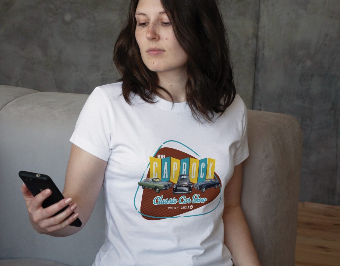 The Caprock Classic Car Club puts on a classic car show in Lubbock, Texas every year. The logo changes every year and the club chooses 3 cars to be highlighted. The logo and cars are incorporated into all the marketing materials. Which include posters, signs, and t-shirts.